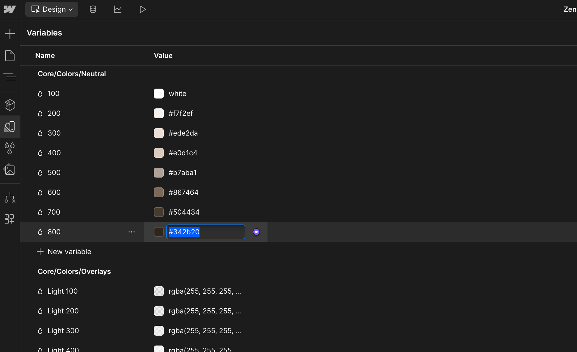 In order to do this, you just need to go to the Variables tab in the left sidebar, then scroll to Colors, and if you double click the color, you will be able to edit them to be updated site-wide to any color needed.